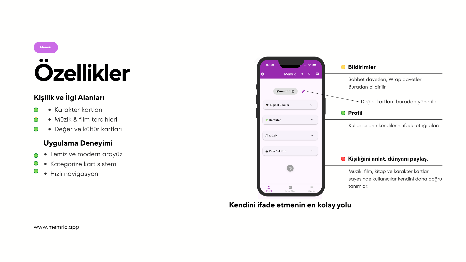 Memric, sosyal bağlantılar ile astrolojiyi birleştiren yenilikçi bir platformdur. Sadece sohbet etmek değil; sohbet ettiğiniz konuyu düşünmek zorunda olmadığınız yeni insanlarla tanışmayı eğlenceli ve hızlı hale getirmek için tasarlandı. tanımak istediğin kişiyle astrolojik uyumuna bakın ve birbirinizin hakkında fikir sahibi olun yada sizi tanımayanlar kişiler için bir sanal cv oluşturun
